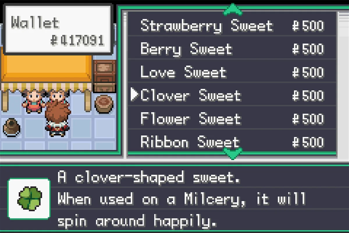 사탕공예(Candy Sweets)는 마빌크(Milcery)를 마휘핑(Alcremie)의 다양한 폼 중 하나로 진화시키는 데 사용할 수 있는 여러 진화 도구입니다.