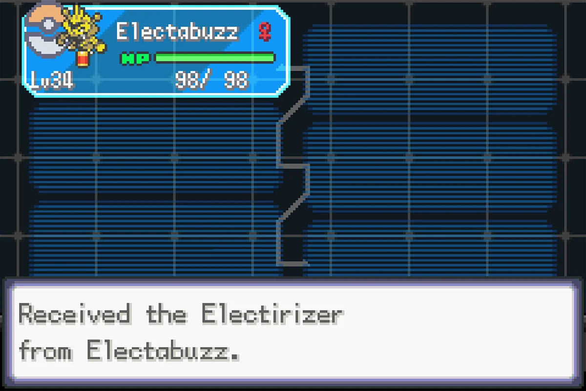 | 포켓몬 조우 – (썬더캡 산 Thundercap Mt.) | 야생 에레브(Electabuzz)가 소지 (5% 확률) | ![]() |