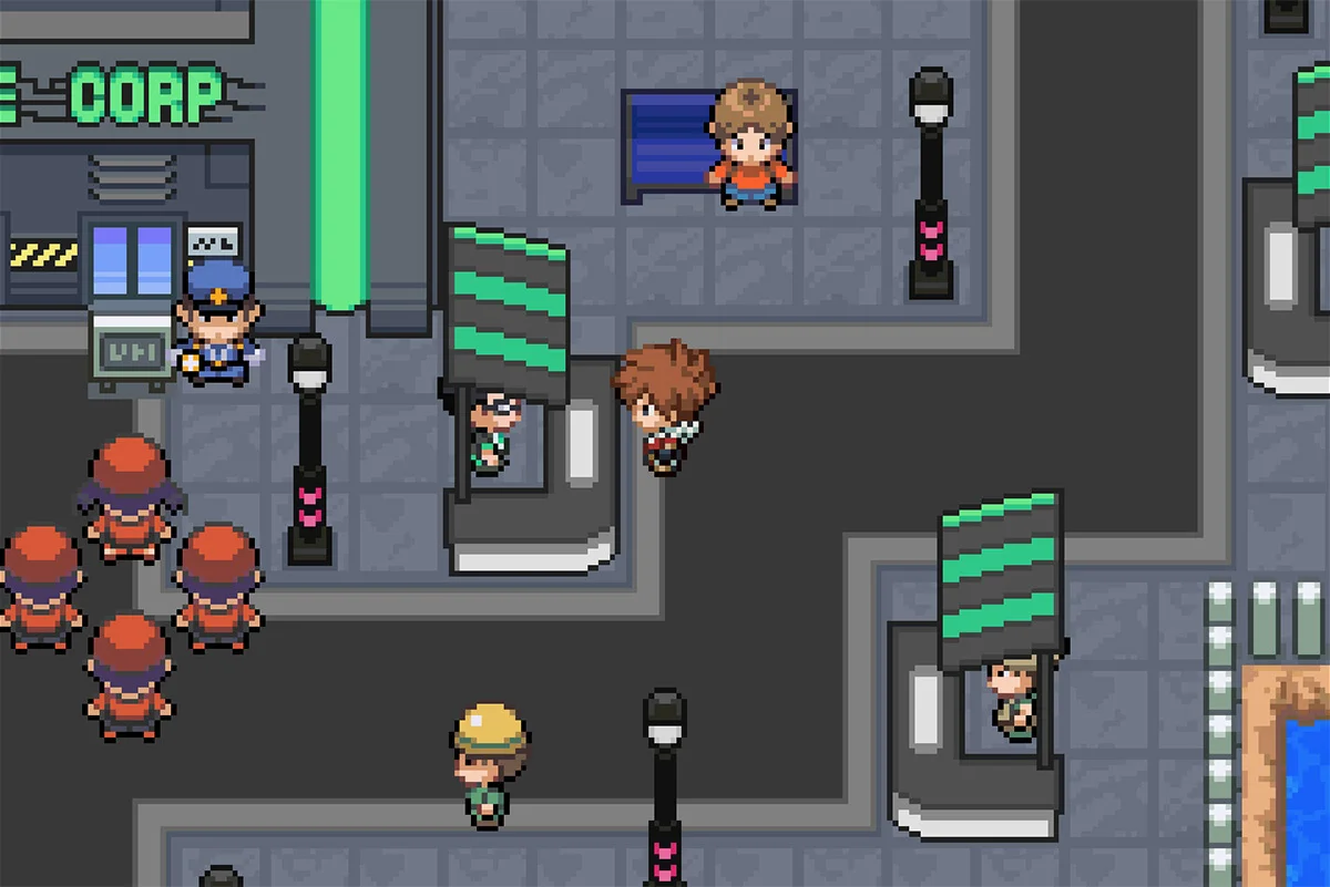 8단계: 남쪽으로 몇 걸음 간 후 길을 지키고 있는 두 트레이너로부터 서쪽으로 향하세요.
