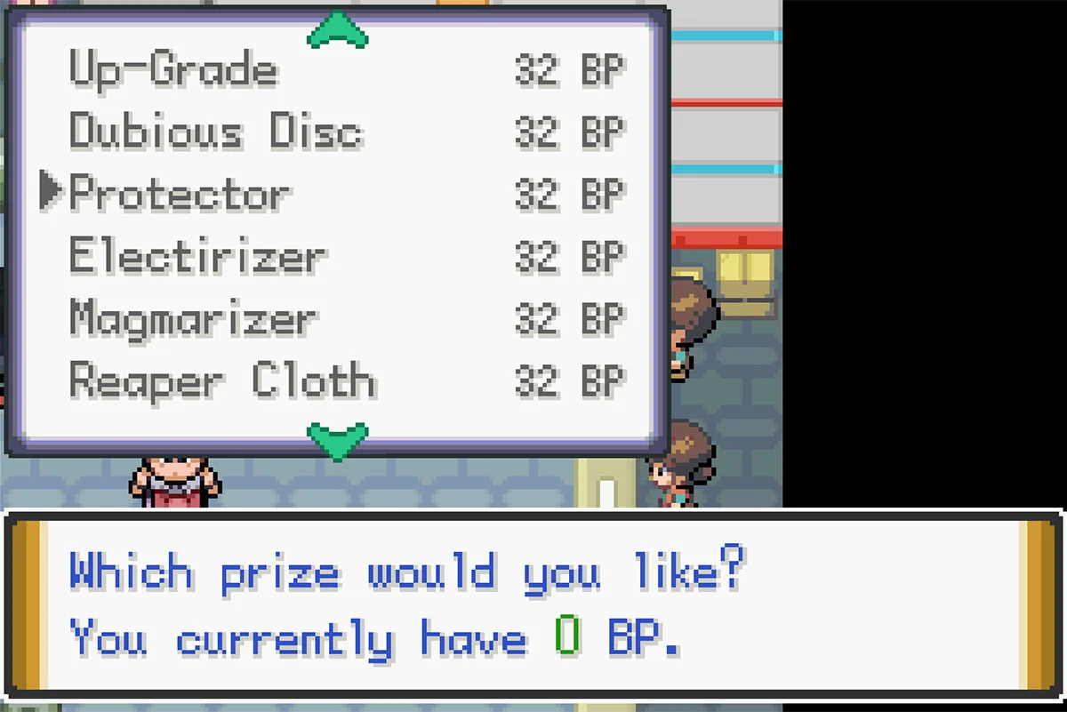 | 배틀 프런티어(Battle Frontier) – 교환 서비스 카운터 | 32 배틀 포인트(BP)로 교환 | ![]() |