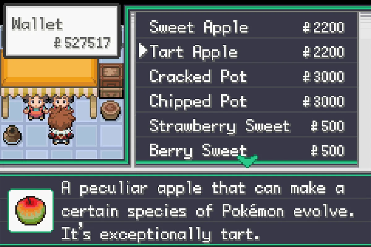 | 폴쇼어 시티(Fallshore City) – 폴쇼어 시티 시장 | 진화 도구 NPC에게 2,200 포켓달러에 구매 | ![]() |