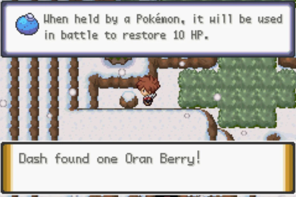 | 오랭열매 Oran Berry | 도로 남쪽 끝 고드름동굴(Icicle Cave) 입구 바로 북쪽, 바위 안에 숨겨져 있음 |  |