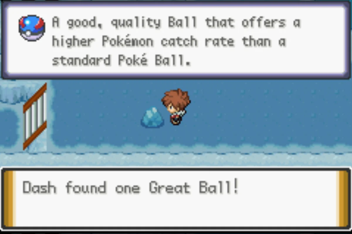 | 수퍼볼 Great Ball | 3층, 럭키(Chansey)와 2층 사다리 동쪽 태권왕(Black Belt) 근처, 얼음 바위 안 |  |