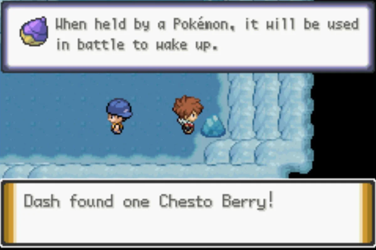 | 유루열매 Chesto Berry | 2층, 동굴 남동쪽 부분 반바지 꼬마(Youngster) 동쪽, 얼음 바위 안 |  |