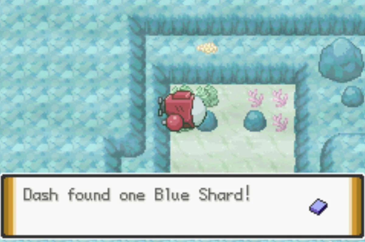 | 노랑조각 Yellow Shard | 다이빙 지점, 첫 번째와 세 번째 챔버 사이 통로, 바위 안에 숨겨져 있음 |  |