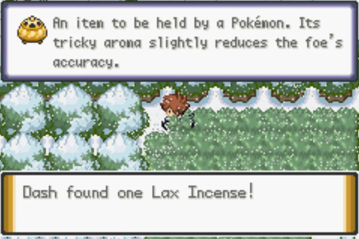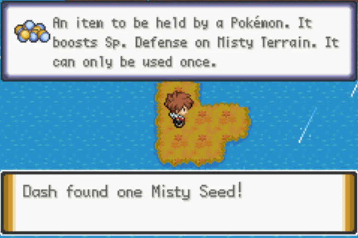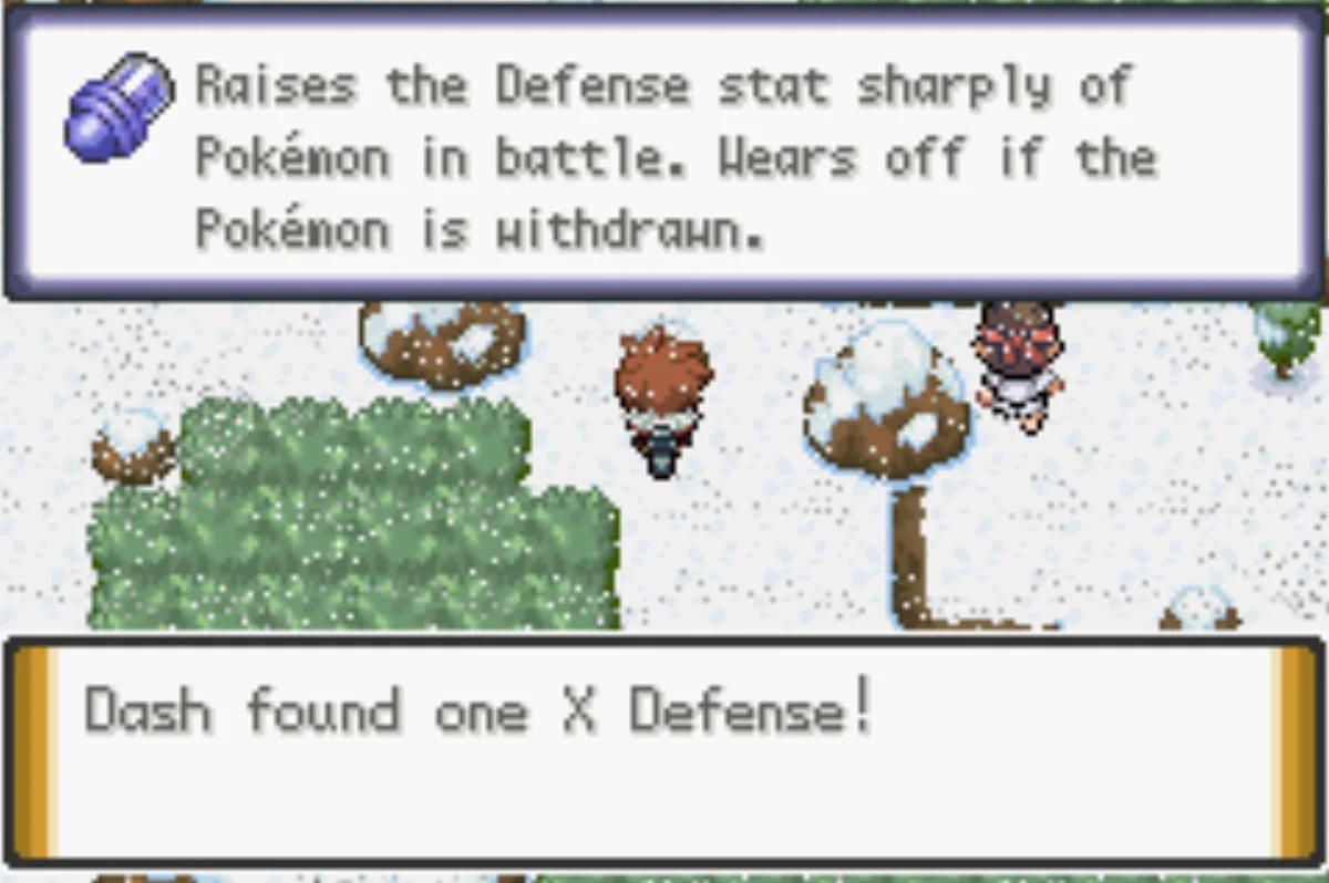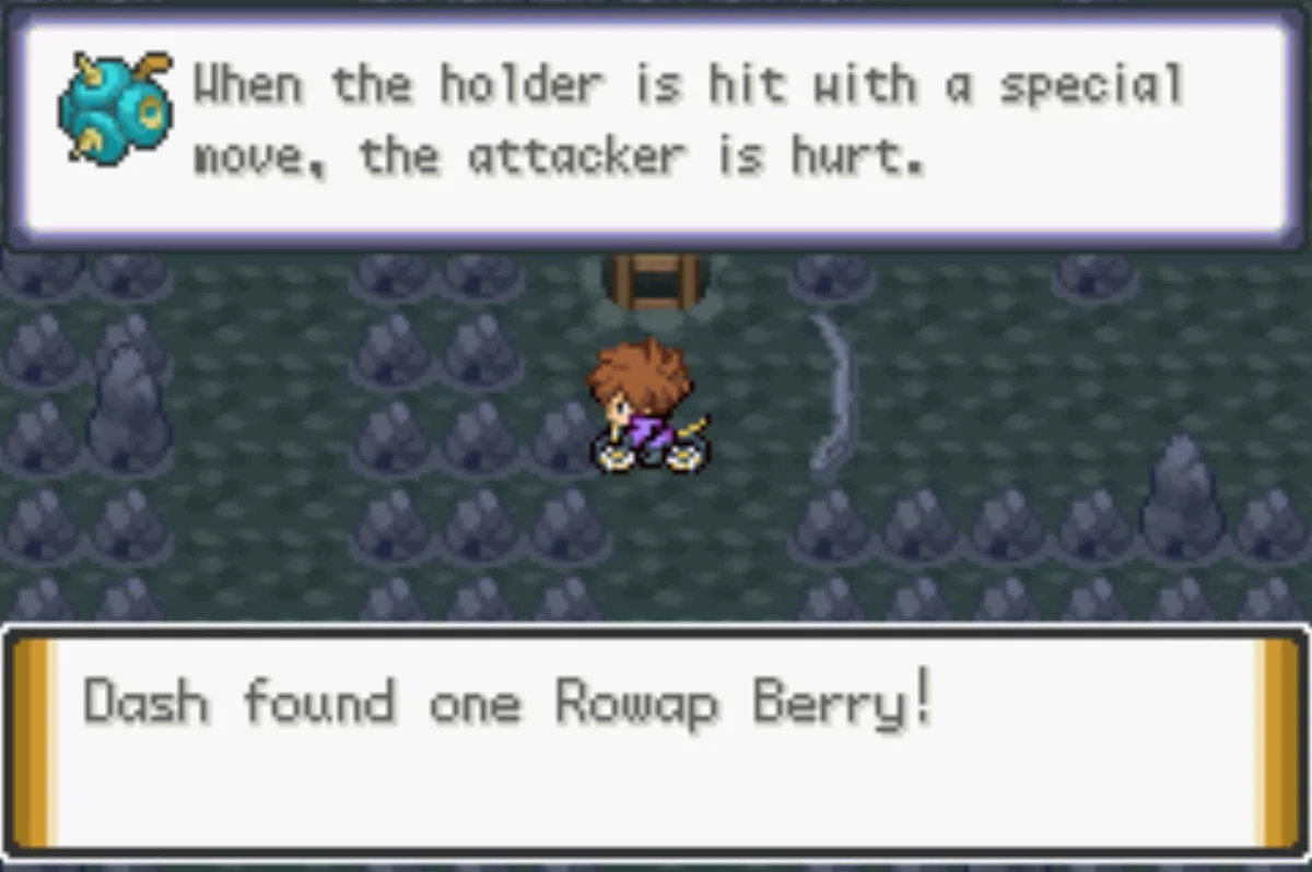 | 스페셜업 X Sp. Atk | 도로 동쪽, 텔 타운(Tehl Town)으로 가는 길, 바위 안에 숨겨져 있음 |  |