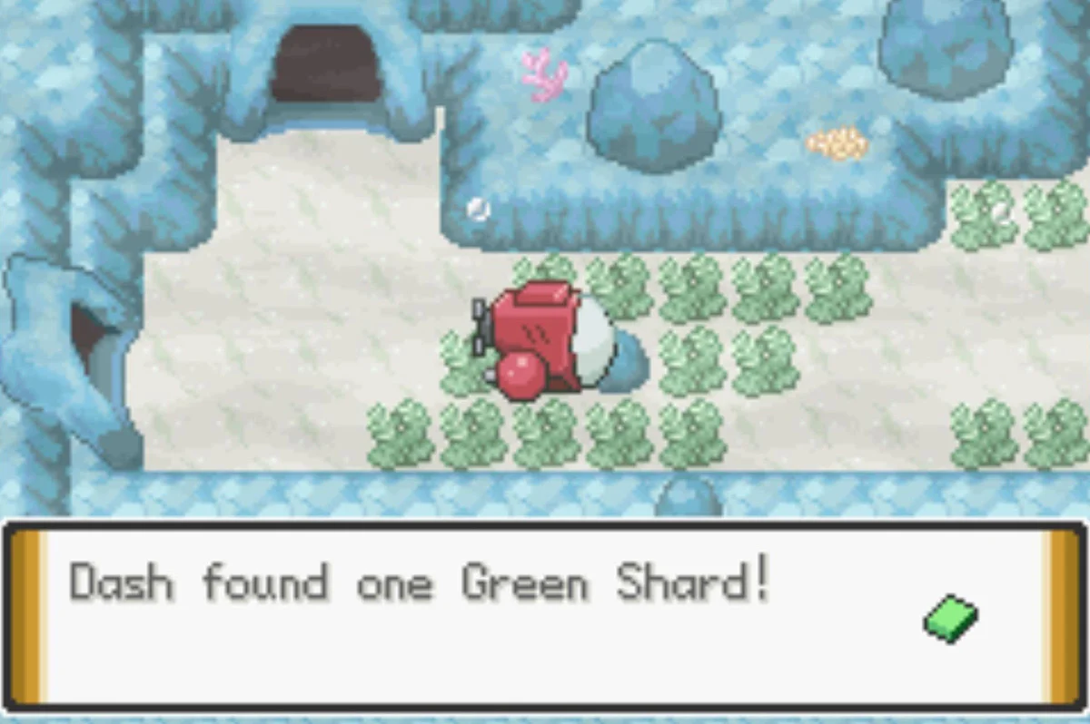| 초록조각 Green Shard | 다이빙 지점, 세 번째와 네 번째 챔버 사이 통로, 바위 안에 숨겨져 있음 |  |