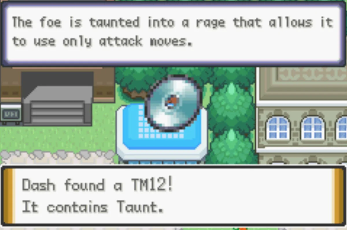 | 기술머신12 도발 (TM12 Taunt) | 프렌들리숍 뒤, 보이지 않게 숨겨져 있음 |  |