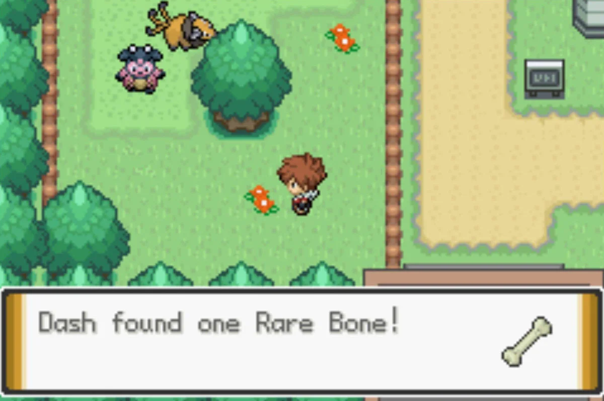 | 귀중한뼈 Rare Bone | 밀탱크(Miltank) 우리 내부, 꽃 안에 숨겨져 있음 |  |