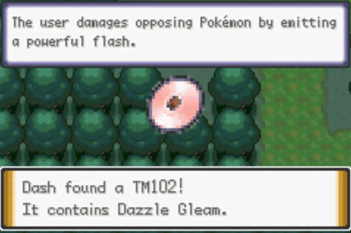 | 기술머신22 솔라빔 (TM22 Solar Beam) | 동쪽 해안 구역 남쪽, 위쪽 긴 풀숲 길, 나무 안에 숨겨져 있음 |  |