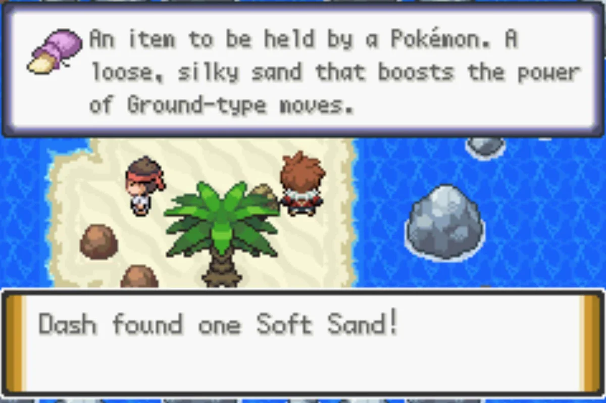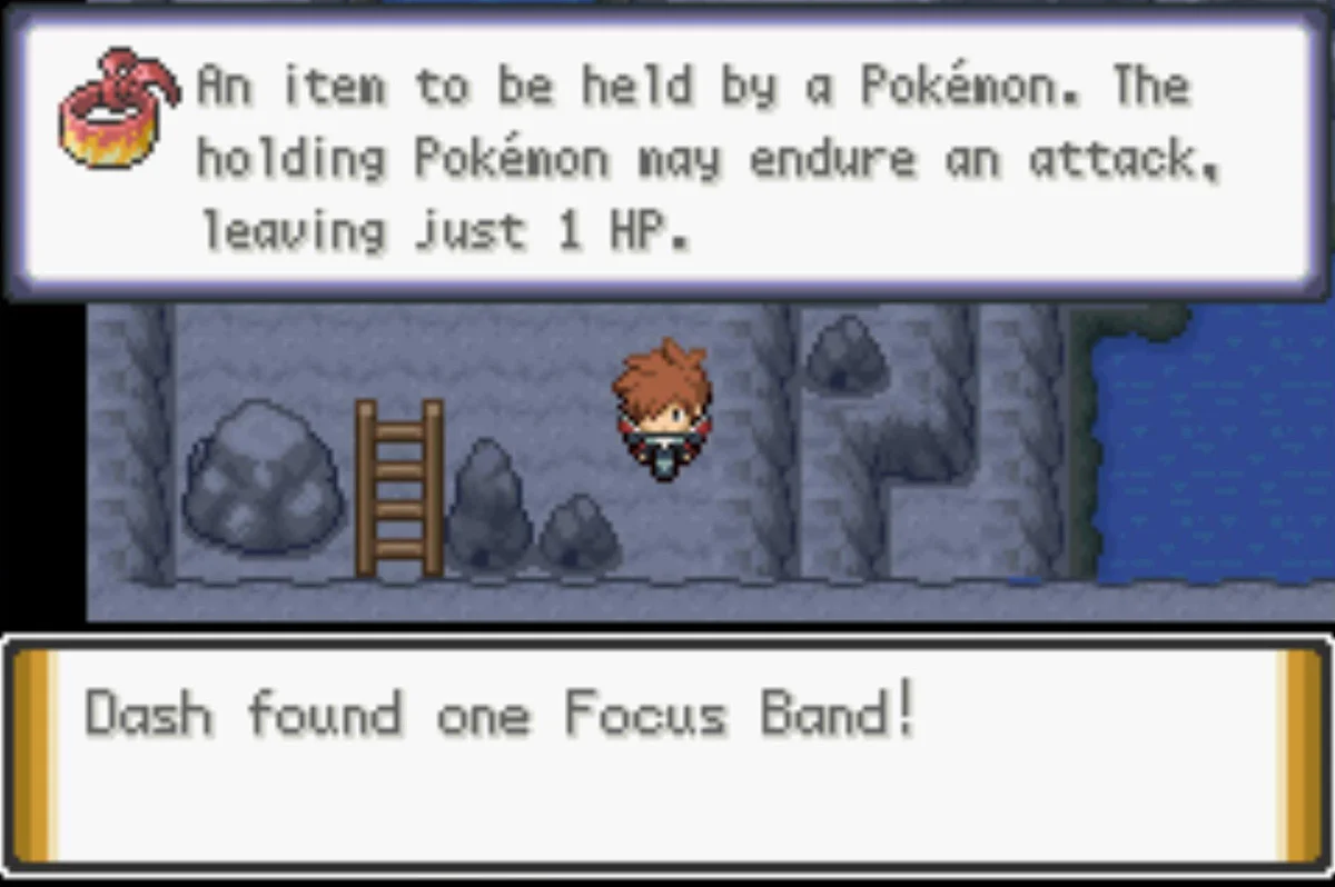 | 기합의띠 Focus Sash | 동쪽 모래 섬, 낚시꾼(Fisherman)이 있는 곳, 모래 안에 숨겨져 있음 |  |