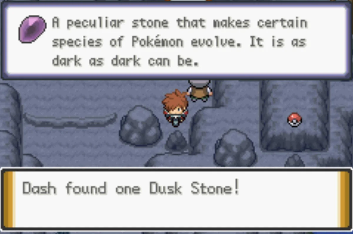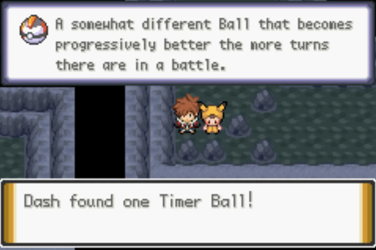 | 다크볼 Dusk Ball | 3층, 동굴 북서쪽, 바위 안에 숨겨져 있음 |  |
