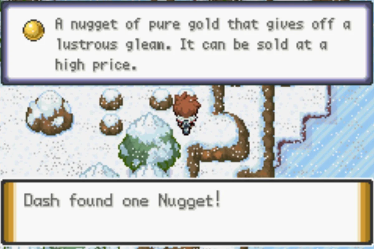 | 금구슬 Nugget | 도로 남동쪽 구석 얼어붙은 연못의 남동쪽, 바위 안 |  |