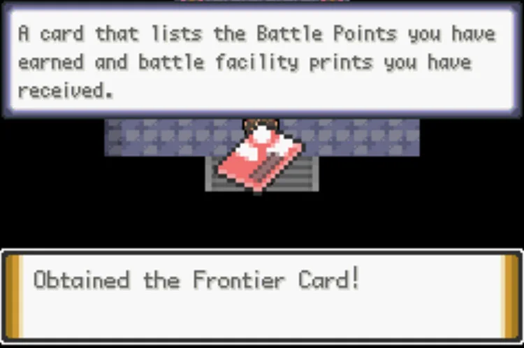 | 프런티어 카드 Frontier Card | 배틀 프런티어에서 획득한 배틀 포인트(BP)를 보관합니다. | 배틀 프런티어(Battle Frontier) (엔딩 이후) 씨포트 시티(Seaport City)에서 게이트하우스로 들어가면 자동으로 획득 | ![]() |