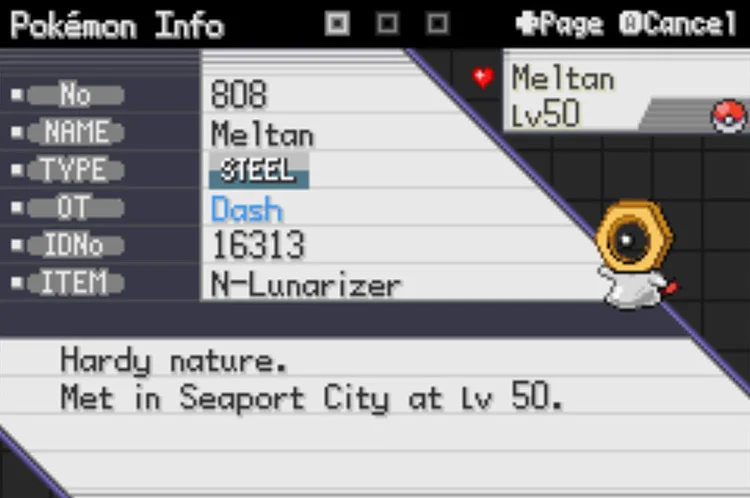 | 네크로플러스루나 N-Lunarizer | 네크로즈마(Necrozma)와 루나아라(Lunala)를 합체시키거나 분리합니다. | 엔딩 후 이상한 소포 코드 8VE4VF5PA4NH 네크로플러스루나(N-Lunarizer)를 지닌 멜탄(Meltan) | ![]() |