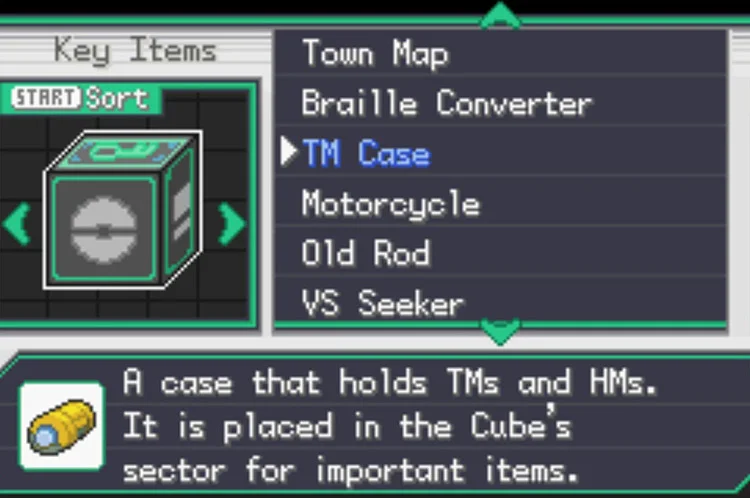 | 기술머신 케이스 TM Case | 발견한 모든 기술머신(TM)과 비전머신(HM)을 보관합니다. | 얼어붙은 고도(Frozen Heights) 큐브와 함께 기본적으로 제공됩니다 | ![]() |