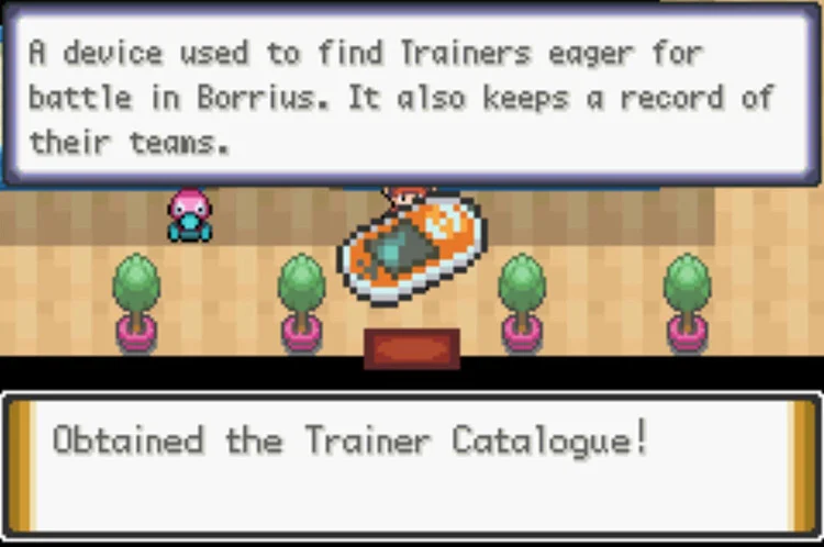 | 트레이너 카탈로그 Trainer Catalogue | 보리어스에서 배틀 가능한 모든 트레이너를 나열하고 그들의 팀 정보를 기록합니다. | 폴쇼어 시티(Fallshore City) 미션 본부(Mission HQ)에 있는 레인저에게 미션 5개를 완료하고 보상으로 획득 | ![]() |