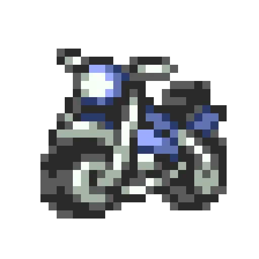 오토바이는 오버월드에서 캐릭터의 이동 속도를 일반 러닝슈즈보다 더 빠르게 하는 데 사용됩니다.