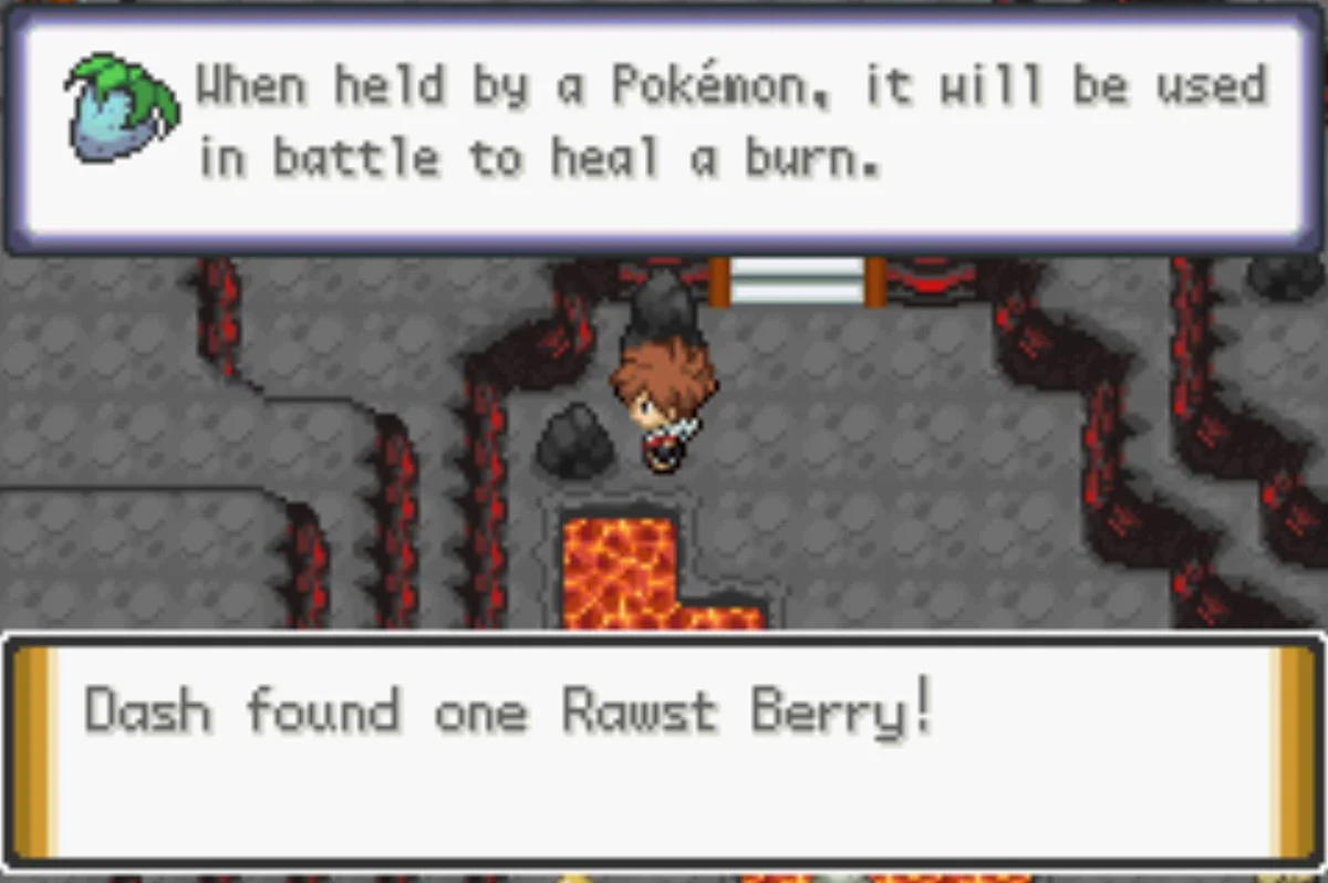 | 복분열매 Rawst Berry | (숨겨짐) 방의 북쪽 부분, 2층 사다리와 히드런(Heatran) 방 통로의 남쪽 | ![]() |