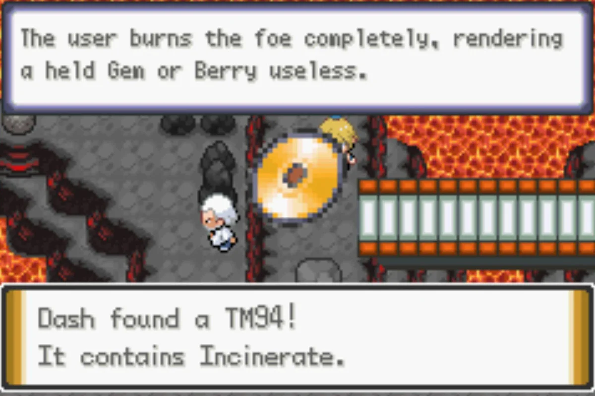 | 기술머신94 불태우기 Incinerate | D 사다리를 통해 갈 수 있는 배틀걸 방, 배틀걸 옆 | ![]() |