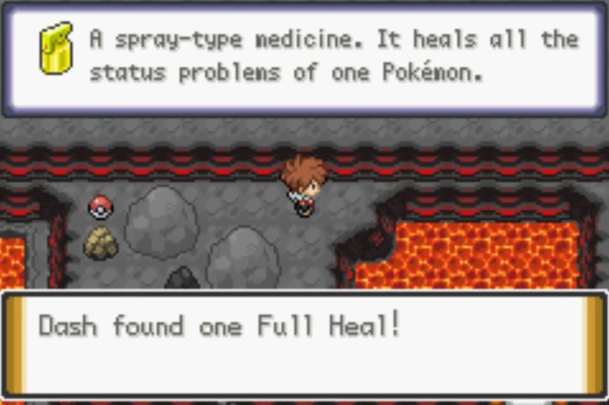 | 만병통치제 Full Heal | (바위깨기 필요) D 사다리를 통해 갈 수 있는 배틀걸 방, 사다리 서쪽, 깰 수 있는 바위 뒤 | ![]() |