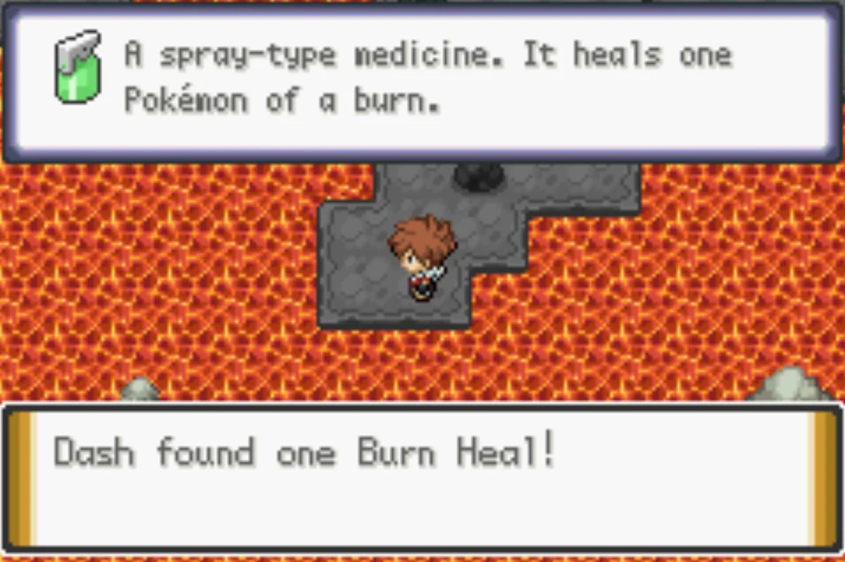 | 화상치료제 Burn Heal | (바위깨기 필요) 반도 남쪽 부분, 깰 수 있는 바위 뒤 | ![]() |