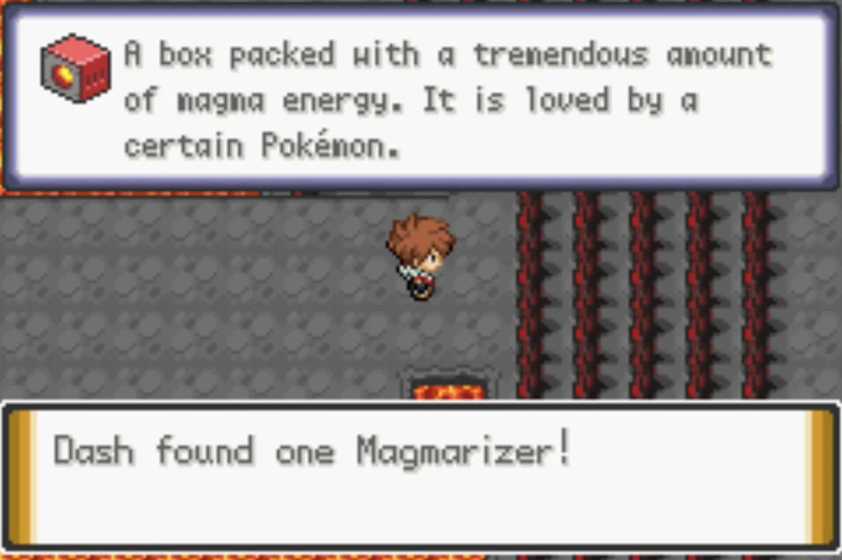 | 마그마부스터 Magmarizer | (파도타기 필요) 방의 남동쪽, 파도타기로만 갈 수 있는 남동쪽 구석 | ![]() |