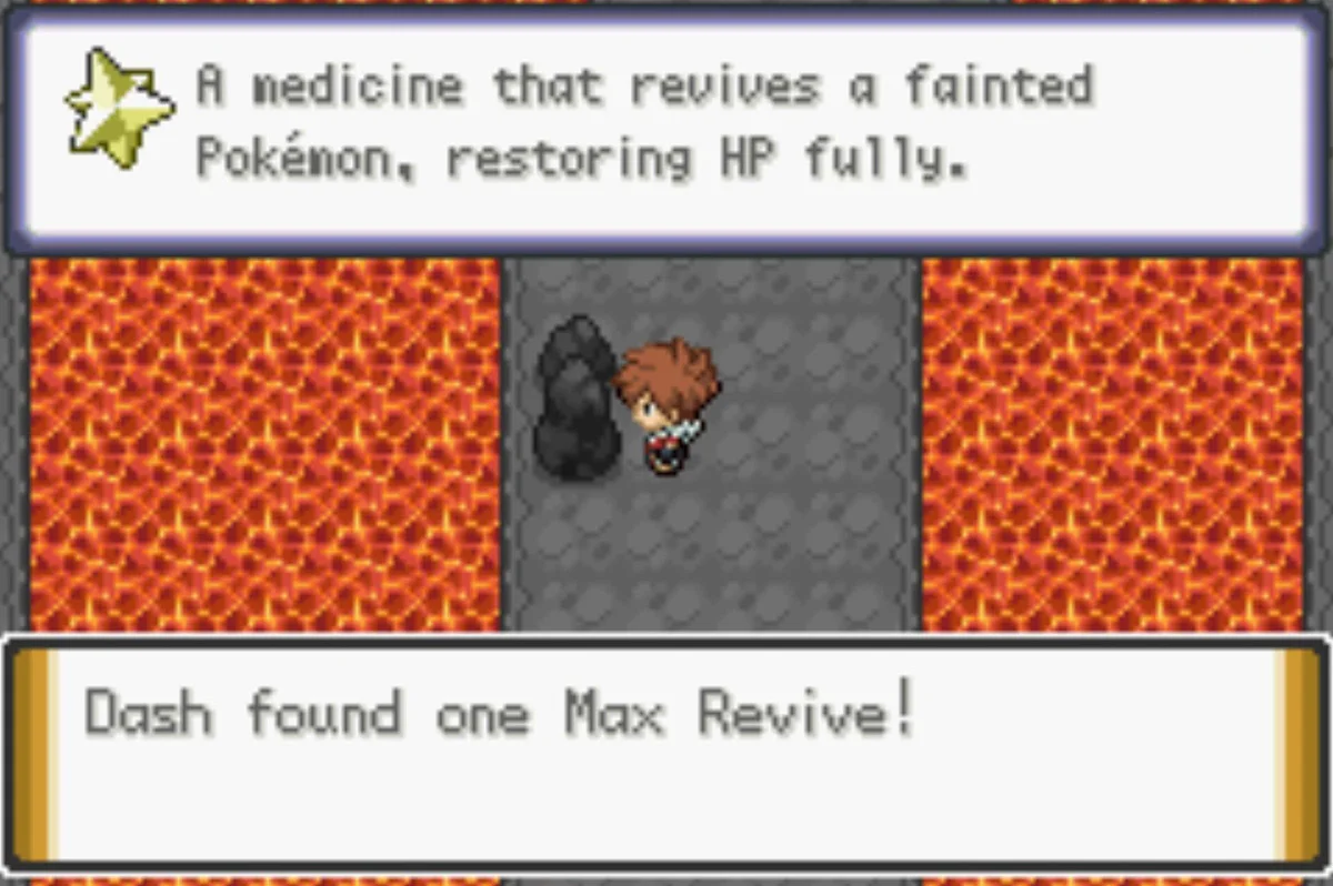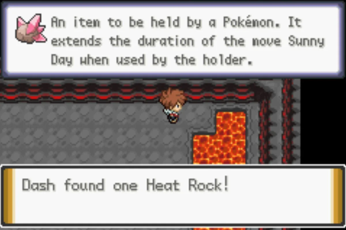 | 뜨거운바위 Heat Rock | 뜨거운 바위 방 북동쪽, 긴 용암 웅덩이 근처 바위깨기로 부술 수 있는 바위 뒤 | ![]() |