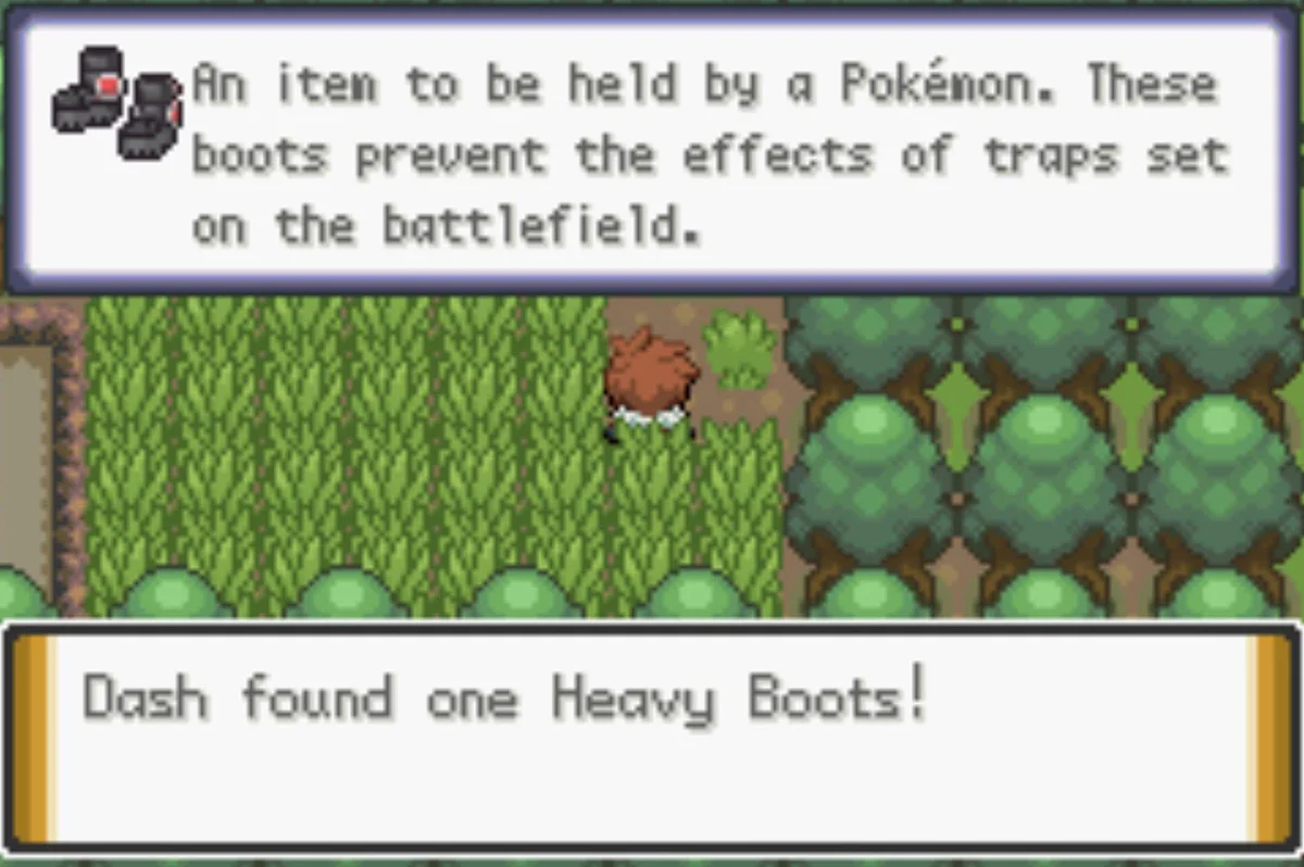 | 헤비부츠 Heavy Boots | 뒤집힌 1자 모양 연못의 북동쪽 가장자리를 건너 중앙 동쪽 풀숲 안 | ![]() |