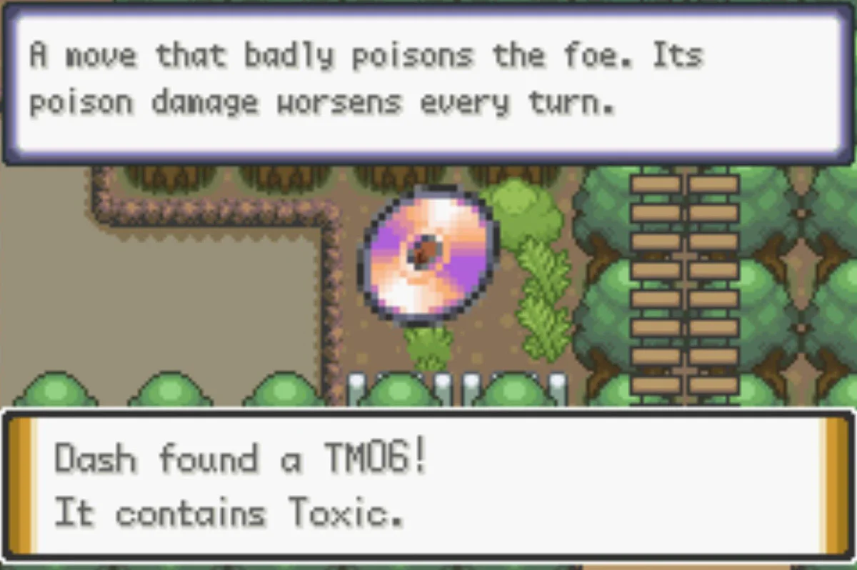 | 기술머신06 맹독 Toxic | 도로 북동쪽 구석, 연못 건너편 | ![]() |