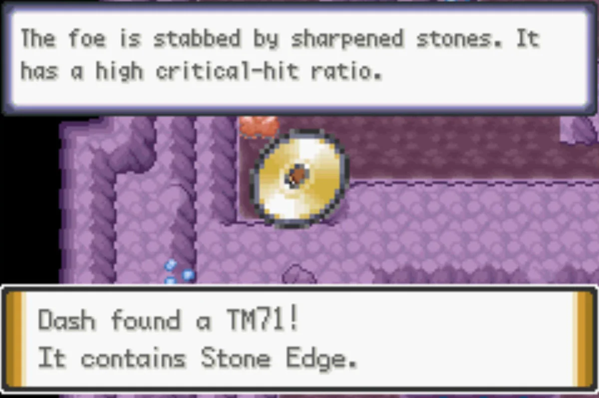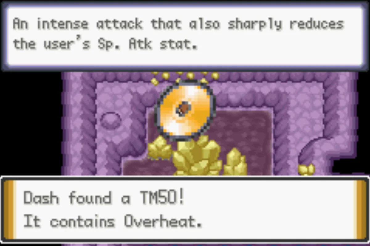 | 기술머신050 오버히트 Overheat | (주황색 및 파란색 크리스탈 꺼짐 필요) 서쪽 방 북서쪽 부분, 노란색 크리스탈 군집 뒤 | ![]() |