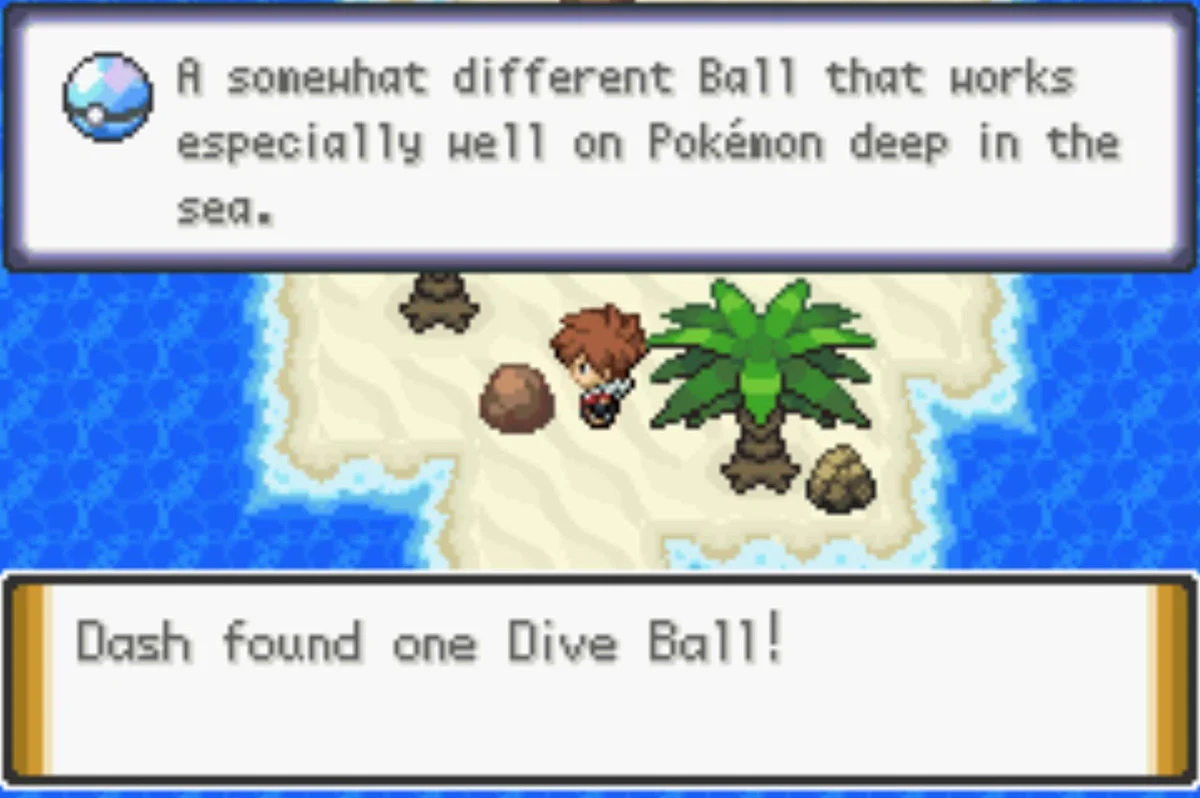 | 다이브볼 Dive Ball | (숨겨짐) 북동쪽 섬, 바위에 숨겨져 있음 | ![]() |