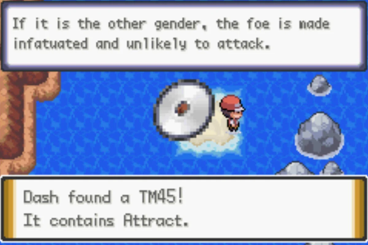 | 기술머신45 헤롱헤롱 Attract | (파도타기 필요) 도로 동쪽, 작은 섬 위 | ![]() |