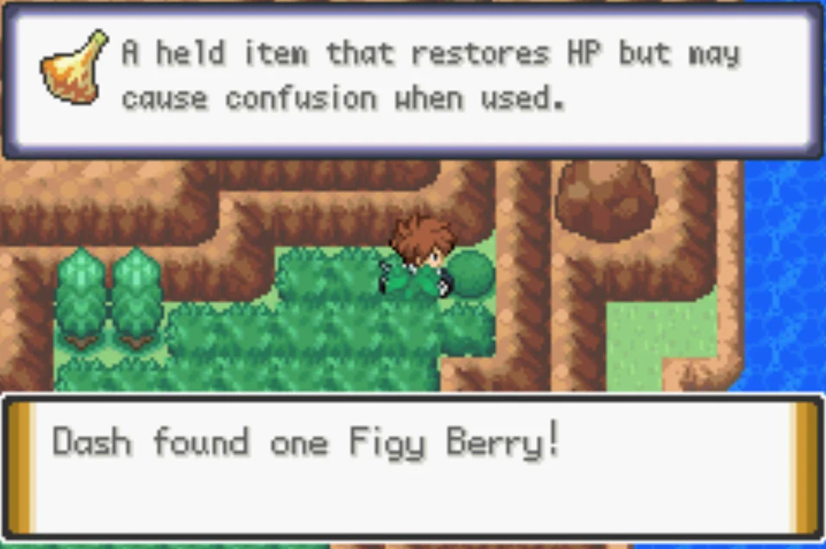| 무화열매 Figy Berry | (숨겨짐) 도로 북쪽, 풀숲의 가장 동쪽 끝, 수풀 속에 숨겨짐 | ![]() |
