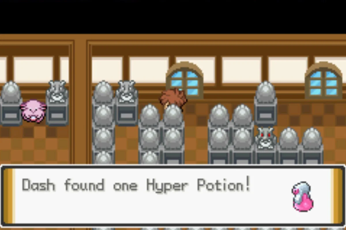 | 고급상처약 Hyper Potion | 2층 슈퍼 너드 방에서 슈퍼 너드 뒤 테이블 위 | ![]() |