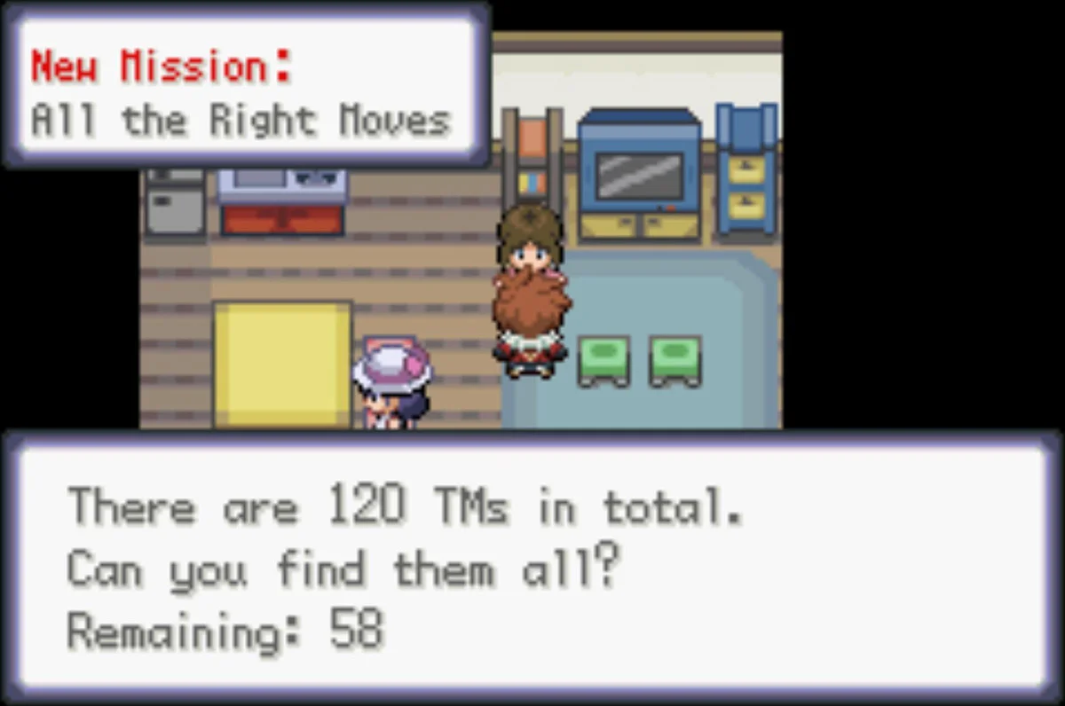 | #006: 모든 올바른 행동 (All the Right Moves) | 폴더 타운(Polder Town) | 조건: 없음 120개의 기술머신(TM) 모두 수집 | 아이템 금색 병뚜껑 Gold Bottle Cap | ![]() |