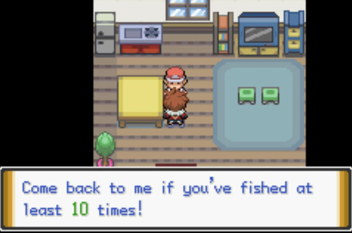 | #011: 평범한 낚시꾼 (Average Angler) | 폴더 타운(Polder Town) | 조건: 구런 타운(Gurun Town)의 낚시꾼과 먼저 대화 낚시로 포켓몬 10마리 잡기 | 아이템 다이브볼 Dive Ball 10개 | ![]() |