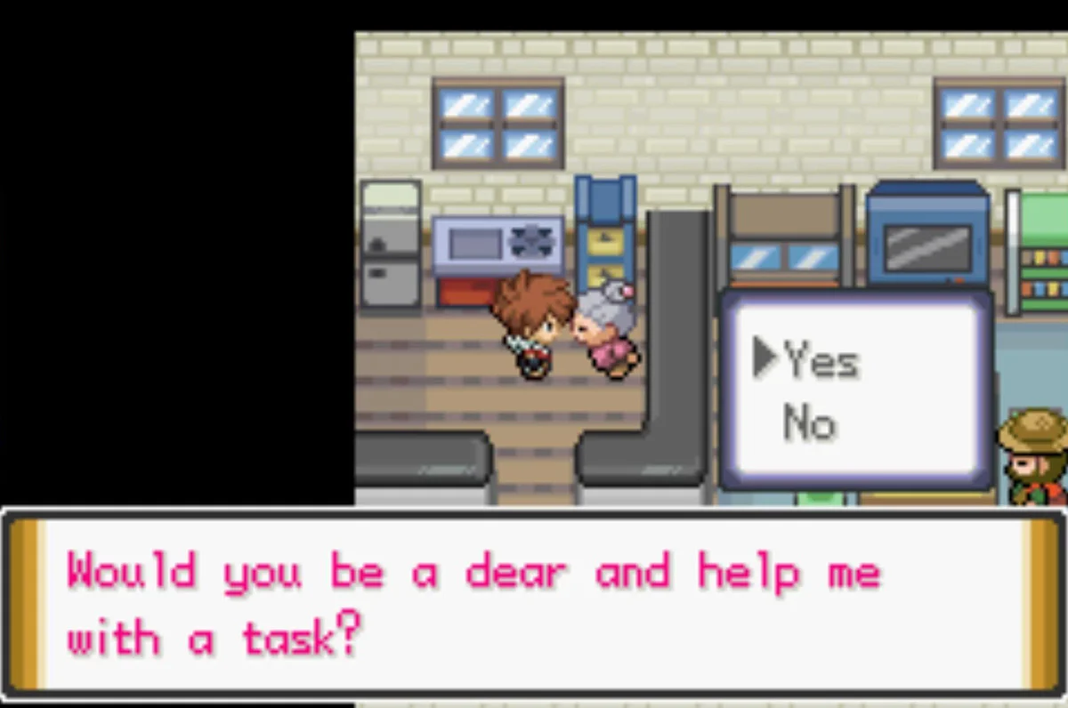 | #041: 이웃의 부탁 (Neighbourly Assistance) | 얼어붙은 고도(Frozen Heights) | 조건: 없음 얼어붙은 고도(Frozen Heights)의 노인에게 해독제 Antidote 가져다주기 | 아이템 에스퍼주얼 Psychic Gem 또는 바위주얼 Rock Gem 또는 강철주얼 Steel Gem (선택한 스타팅 포켓몬에 따라 다름) | ![]() |