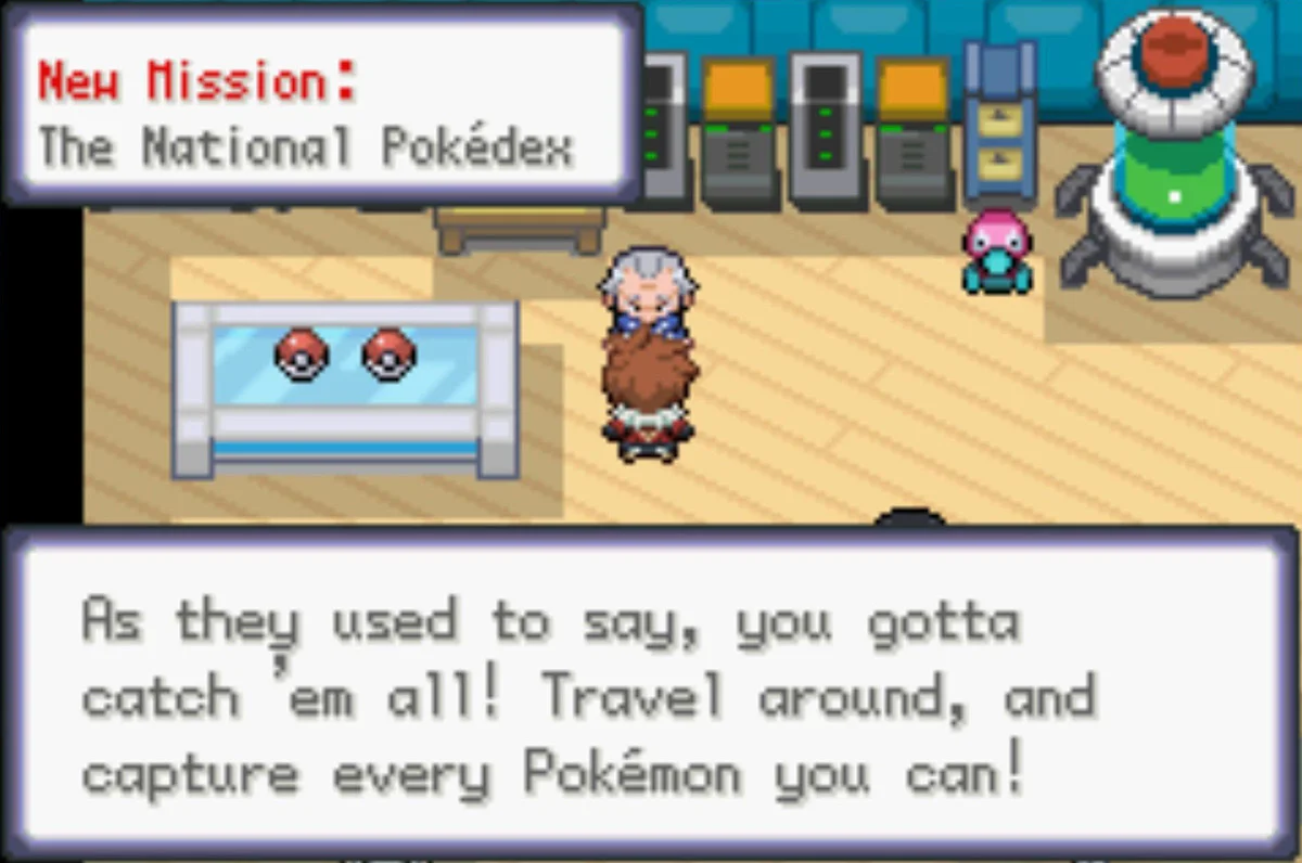 | #062: 서부 보리우스 도감 (The West Borrius Pokedex) | 얼어붙은 고도(Frozen Heights) 로그 박사(Professor Log)의 연구소 | 조건: 없음 서쪽 보리우스(West Borrius)의 모든 포켓몬 보기 | 아이템 흔들림없는부적 Catching Charm | ![]() |