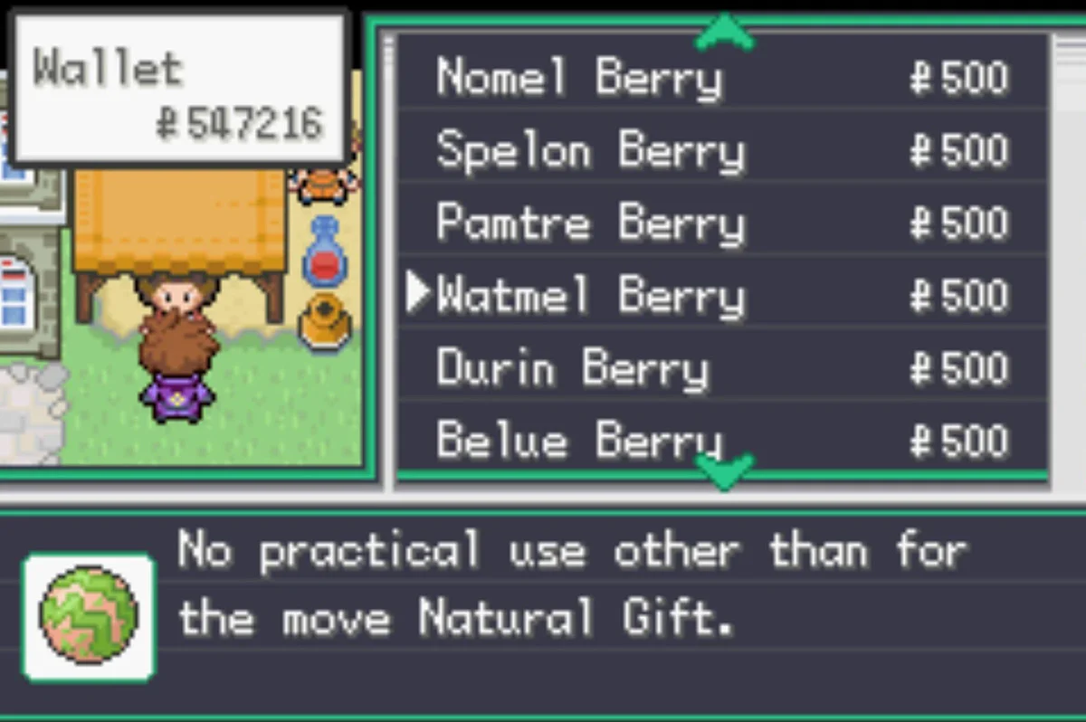 | 복분열매 Rawst Berry | 4번 도로 4번 도로에서 잡은 둔타(Numel)가 도구로 가지고 있을 확률이 높습니다. 도둑질(Thief), 탁쳐서떨구기(Knock Off), 탐내다(Covet) 기술을 쓰거나 그냥 잡아서 빼앗으세요. | ![]() |