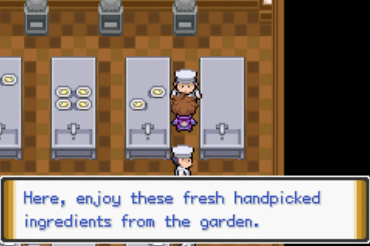 | 일일 이벤트 #005 포켓몬 타입과 열매 | 블리자드 시티(Blizzard City) 포켓몬 센터와 가장 가까운 집의 1층 주방 여성에게 그녀가 요구하는 타입의 포켓몬을 보여주면 무작위 열매를 줍니다. | ![]() |