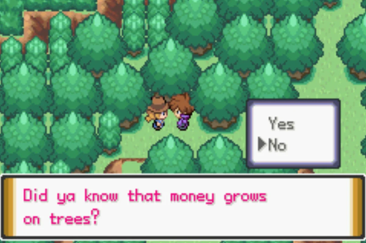 | 일일 이벤트 #023 돈나무 | 18번 도로(Route 18) 포켓몬 센터 뒤쪽 나무들 사이 목장 아가씨에게 말을 걸고 '아니오'라고 답하여 공짜 돈을 받으세요. | ![]() |