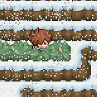 내려가기 시작하세요, 하지만 두 번째 락클라임 지점 후, 동쪽으로 가서 눈 덮인 플랫폼의 가장 오른쪽 모퉁이에서 락클라임을 사용하세요.