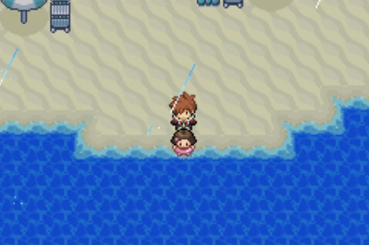 해변은 동쪽으로 이어지며, 아이템과 트레이너들을 만날 수 있습니다.