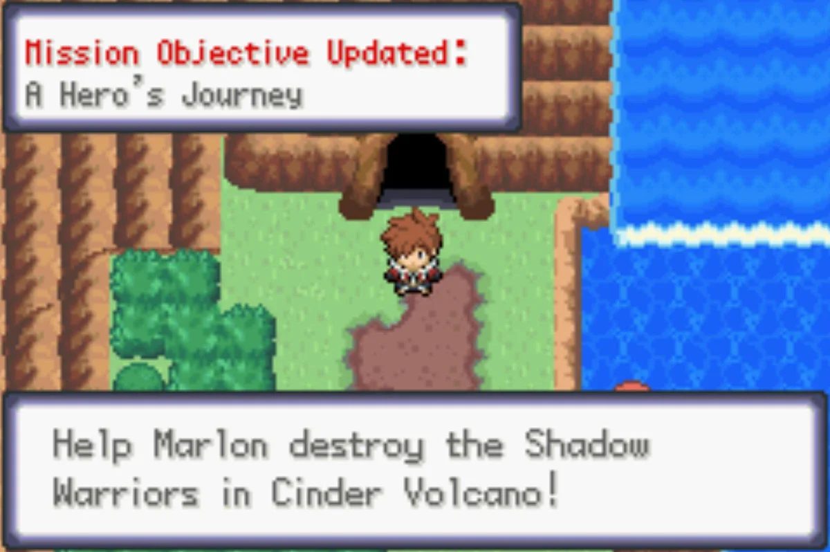 그림자단 조무래기들이 즉시 당신을 발견하고, 필사적으로 막으려 산 측면을 폭파합니다. 그로 인해 계단이 파괴되고 잭스의 찌르호크(Staraptor)가 다치고 어딘가로 사라집니다.