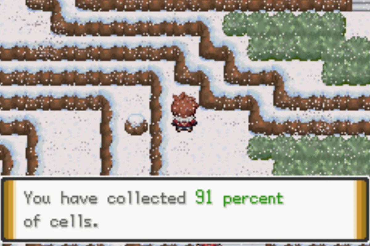 이제 챔피언로드의 상층부 눈 덮인 경사면에 도착했습니다. 포켓몬 리그가 가까워졌습니다.