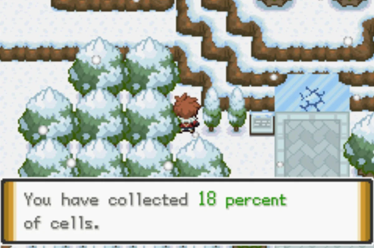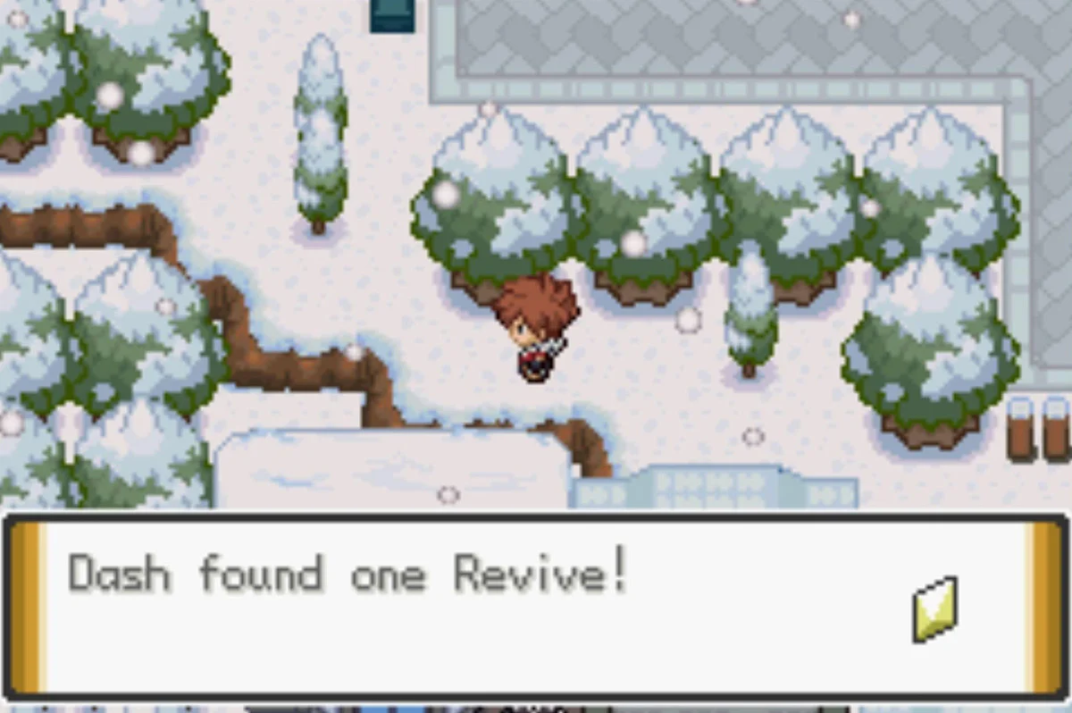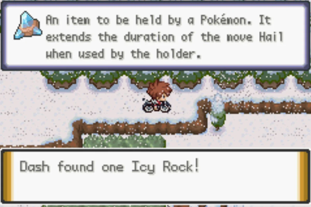 참고: 동굴을 나오는 순간부터 싸라기눈이 내려 모든 배틀에 영향을 줍니다. 포켓몬이